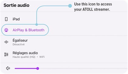 Ezt követően érintse meg az okos eszközén (telefon, vagy táblagép, vagy akár számítógép) az AirPlay ikont, és válassza ki az Atoll hálózati lejátszóját.