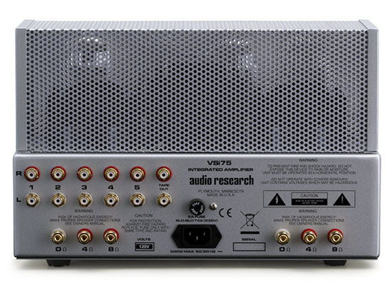 A hátsó fertályon öt pár RCA bemenet és egy rögzített szintű RCA kimenet található, négy és nyolc Ohm terhelésre dolgozó aranyozott sárgaréz hangszóró kötések, valamint egy 15 amperes IEC csatlakozó a mellékelt tápkábel részére. Szép kivitelű és az erősítőhöz kifejezetten illő fém távirányító vezérli az összes funkciót, szabályozható a kijelző fényereje és láthatóvá válik a „cső óra”. Mindezekből látszik, hogy a VSi 75 egy teljesen más ligában játszik, mint a kisebb típusszámú modell.