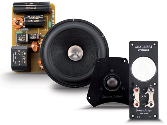 Az „Evolution” változatban a magas frekvenciájú spektrumot Ragnar Lian (ScanSpeak) tervezte klasszikus 1.1 col (29 mm) membrán átmérőjű, ultra dinamikus linearitást biztosító magas hangszóró kezeli, ami a két legjobb és legismertebb lágy dóm-hangszóró a D28 és a D29 modellekben felhasznált tapasztalatok alapján született. A megalkotás fő szempontja a természetesség, az „Evolution” verzió javult annak érdekében, hogy ellen-fázisú viselkedés minimalizálásával optimalizálja az extrém magas frekvenciákat. A Guarneri Evolution talán legfontosabb eleme a közép/mély hangszóró 179 mm-es, amely növeli a zenei crescendo leképezésének dinamikus képességeit. Ezt a hangszórót elsősorban természetes hangzása miatt választották. A recept: a membrán nem préselt cellulóz, amely lassan stabilizálódik, hanem egy természetes folyamat révén a levegőn száradó fajta. Az elképzelés létjogosultságát a papirusz gyártásában keresték, felfedezve más természetes szálak előnyös jellemzőit. A legkönnyebb természetes rost a világon, a kenáf, ez a rost nagyon hasonló a kenderhez. Ezek a szálak képesek csökkenteni az hang elszíneződését.