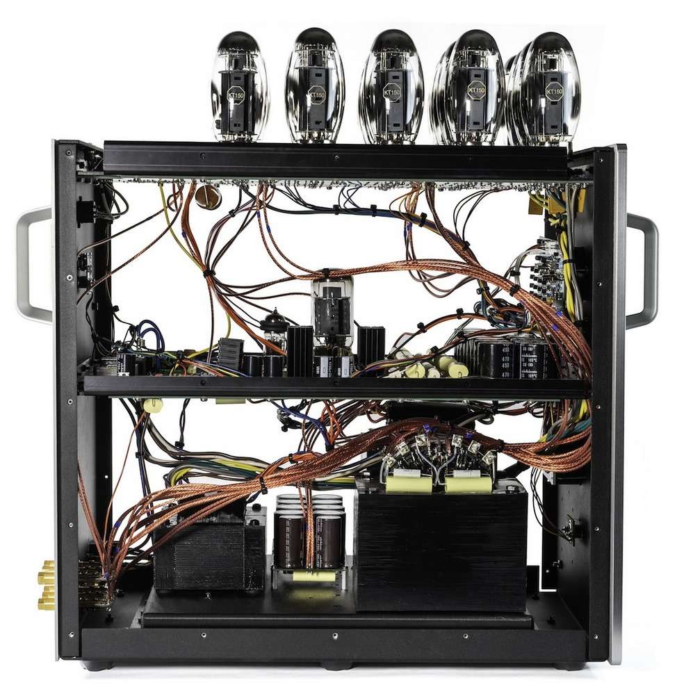 - Elektroncső készlet: 8 párba válogatott KT150 teljesítmény erősítő, 1 6550WE szabályzó; 1 6H30 szabályozó erősítő , 1 válogatott KT150 meghajtó, 1 6H30 követő.