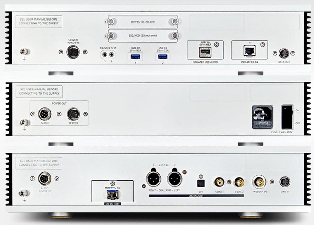 - USB Audio (Dedikált), Dual AES/EBU (OCXO vezérelt, BNC Coax SPDIF(OCXO vezérelt),