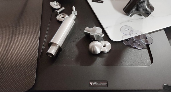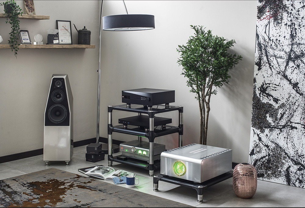 Marco Acerbis a nemzetközileg elismert díjnyertes tervezőnek köszönhető, hogy a forma és a funkció ilyen magas szinten találkozott. Az 50 mm vastag tömör rozsdamentes acél lábazat és a polcok karbonszálas csatlakozása többszörösen kipróbált, tökéletes csillapítást garantáló technológia, ami a Revolution Line sorozatban már bizonyított.