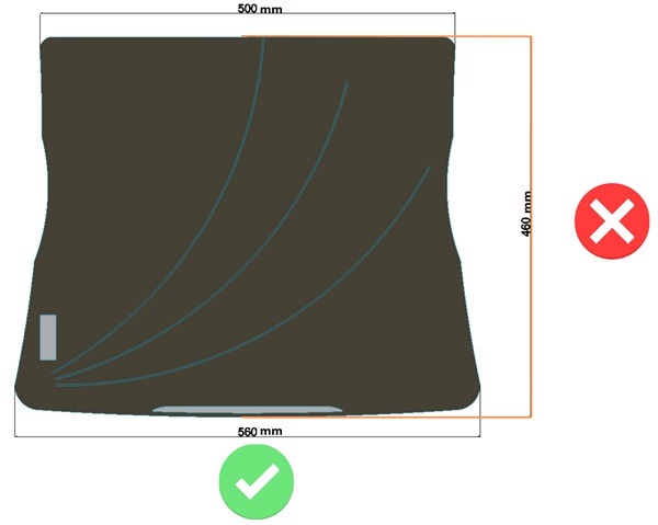 - Teljes méret: 560 x 520 mm (szélesség x mélység) max.
