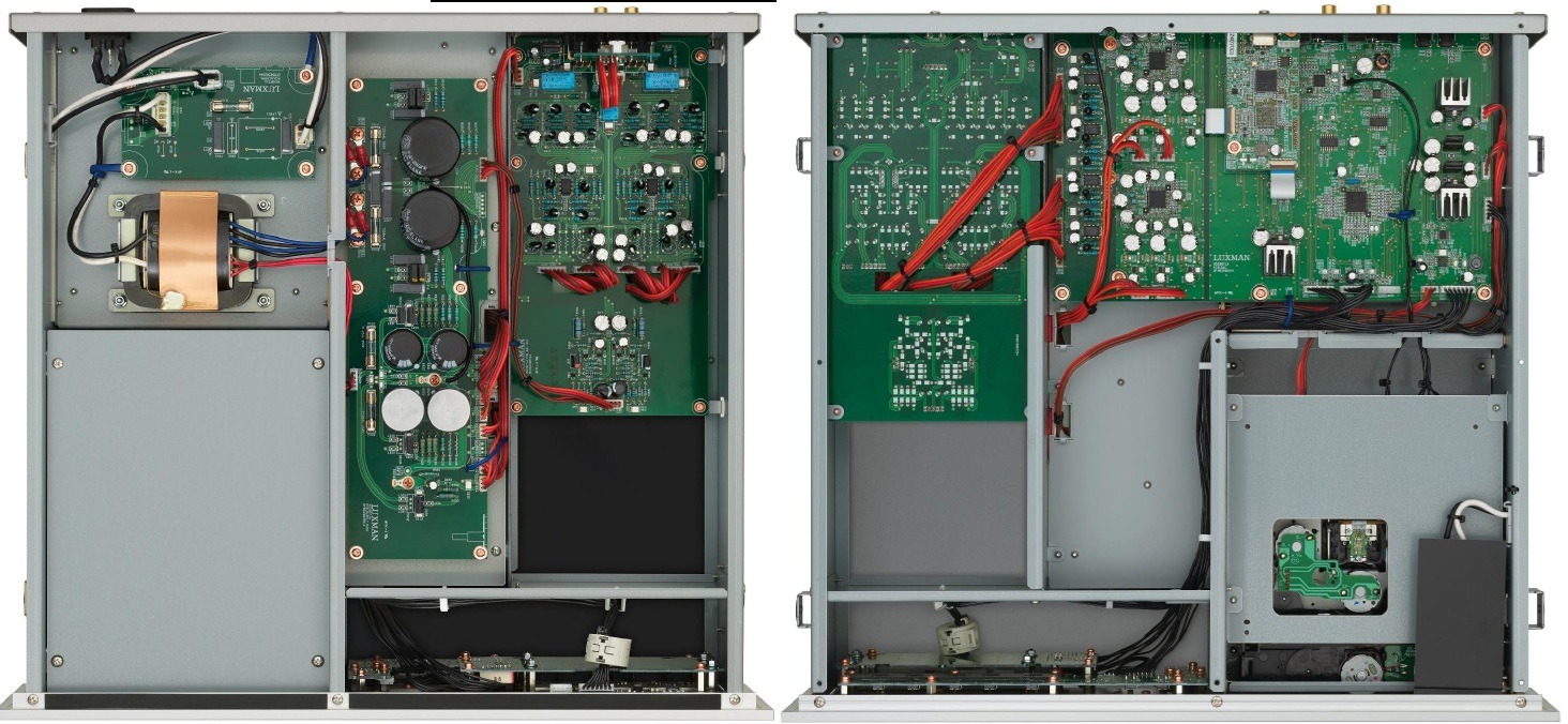 A duál mono DAC kimenetei Luxman által gyártatott egyedi alkatrészeken haladnak úgy, hogy az áramköri lapokon a fólia mintázatban nincs sarok, ahol a töltés felgyülemlik. A belső kábelezésre OFC kábeleket használtak. Az XLR kimeneten a fázis átkapcsolható.