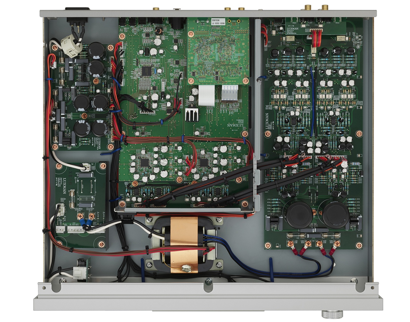 Közismert, hogy a digitális jelfeldolgozó egységek is meghálálják a jó minőségű, alacsony zajú tápellátást. A DA07X egy OI vasmagra tekercselt transzformátort, de három különálló analóg tápegység elektronikát tartalmaz. Különböző optimalizált elnyomási tényezővel, önálló szűrőkapacitás bankkal épültek, hogy a tápvonalakon keresztül a részegységek ne tudják egymást zavarni. Az analóg részen Luxman specifikációkkal gyártott egyedi elektrolit kondenzátorokat építettek be.