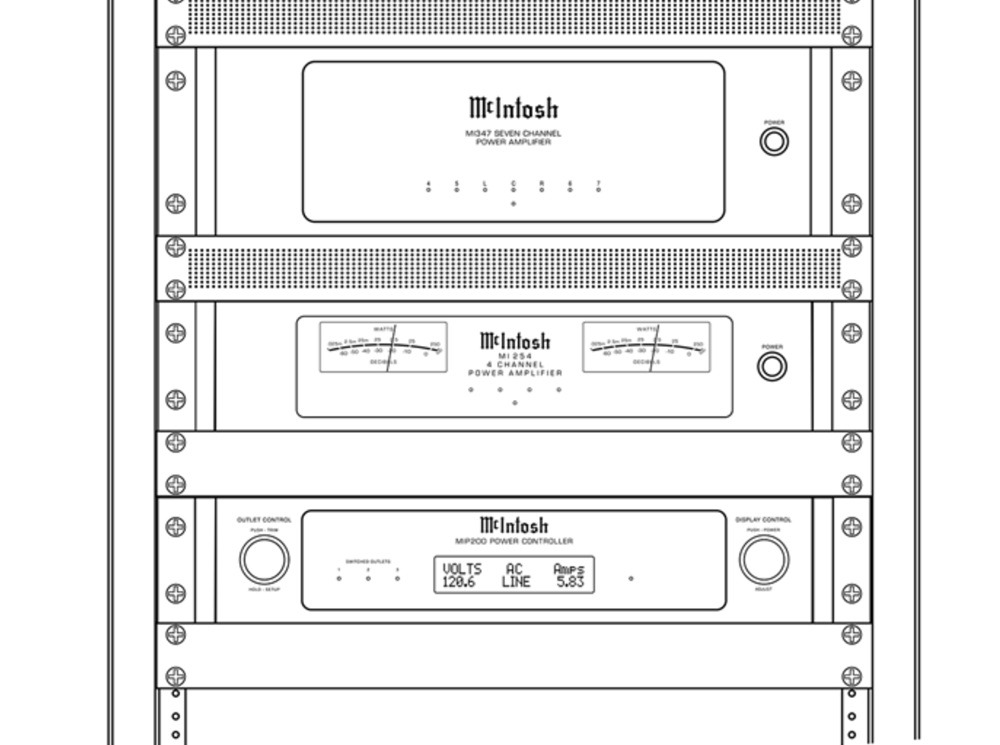 A McIntosh többféle rack állványba építhető készüléket kínál, amelyek hálózati feszültség ellátását megoldhatja. Multicsatornás erősítők közül például az MI347, vagy az MI128. Az MHT300 AV receiver, vagy az MX200 processzor is választható.