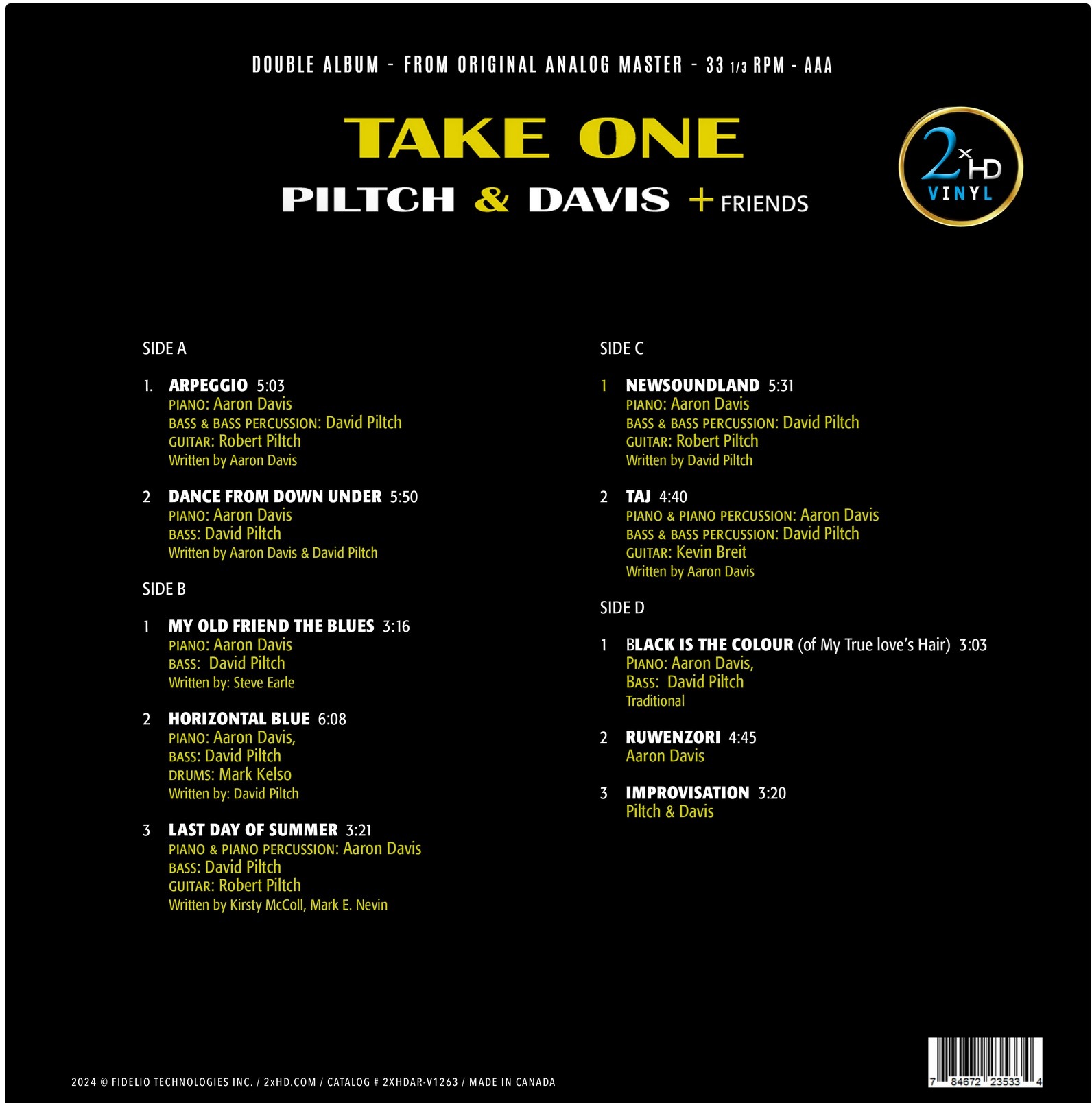 This truly intimate and personal acoustic jazz album was recorded ‘off the floor’ with no overdubs; displaying a wonderful spontaneous fusion of spirit. The David Piltch and Aaron Davis duo has been appreciated by audiophiles since their early 90s performances as part of the Holly Cole Trio, in the classic album ‘Don’t Smoke in Bed’ and ‘Girl Talk’