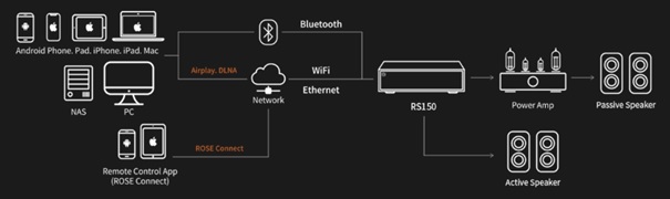 A Rose RS150B nagy teljesítményű hálózati lejátszó Roon Ready tanúsítvánnyal rendelkezik. Mac, PC és Linux számítógépeken, vagy bármilyen eszközön, amelyik tartalmazza a Roon Core rendszert azonnali csatlakozási lehetősége van, mert az alkalmazás automatikusan felismeri a készüléket, és fel fogja ajánlani. A funkció használatához nincs szükség meghajtó telepítésére, a Roon Bit-Perfect lejátszást biztosít.