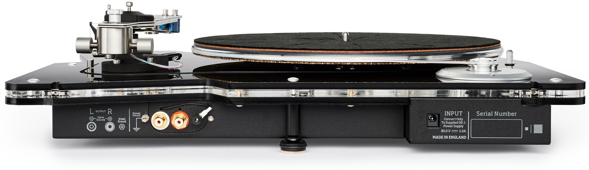 Az alváz mérnöki remekmű. Három rétegű szendvics szerkezet, amelynek hordozó része rezonancia mentes akril. A hordozó rész külön el van választva a fő és az elsődleges alváz rétegektől. A rezgés csillapító lábazat állítható, így a vízszintezés egyszerű. Az acél chassis részen ülő alváz kecses, és rendkívül jól csillapított, ami a hangminőség és a látvány szempontjából is fontos. Ugyanígy fontos része a látványnak az elegáns akril porvédő fedél.